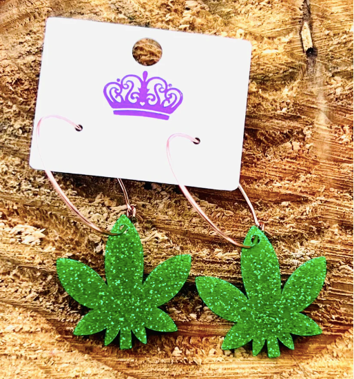 420 Hemp Leaf Acrylic Hoop Earrings