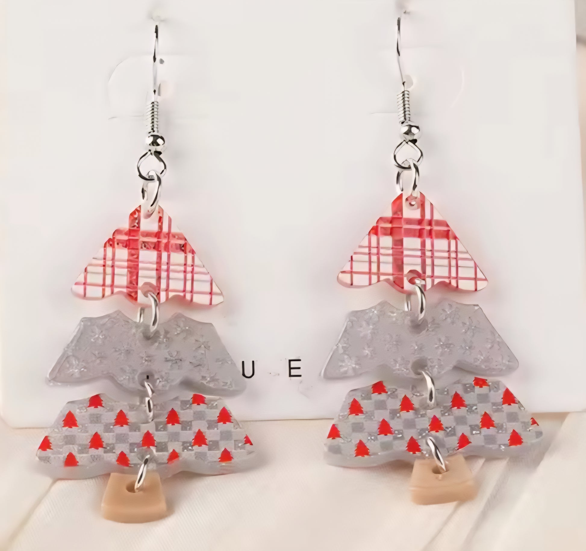PREORDER Christmas Red Snowflake Tree Acrylic Dangle Earrings