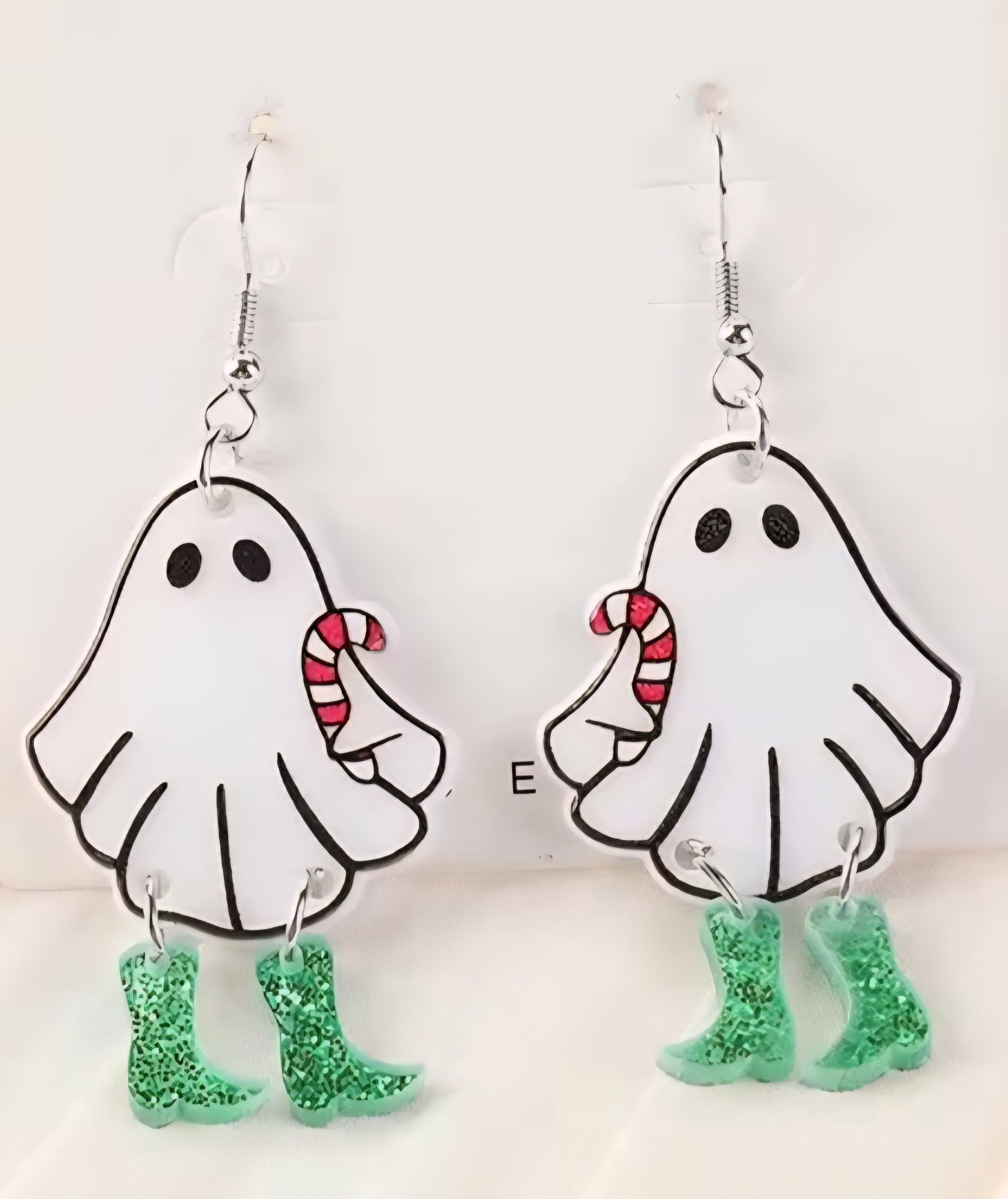 PREORDER Christmas Green Boots Candy Cane Ghost Acrylic Dangle Earrings