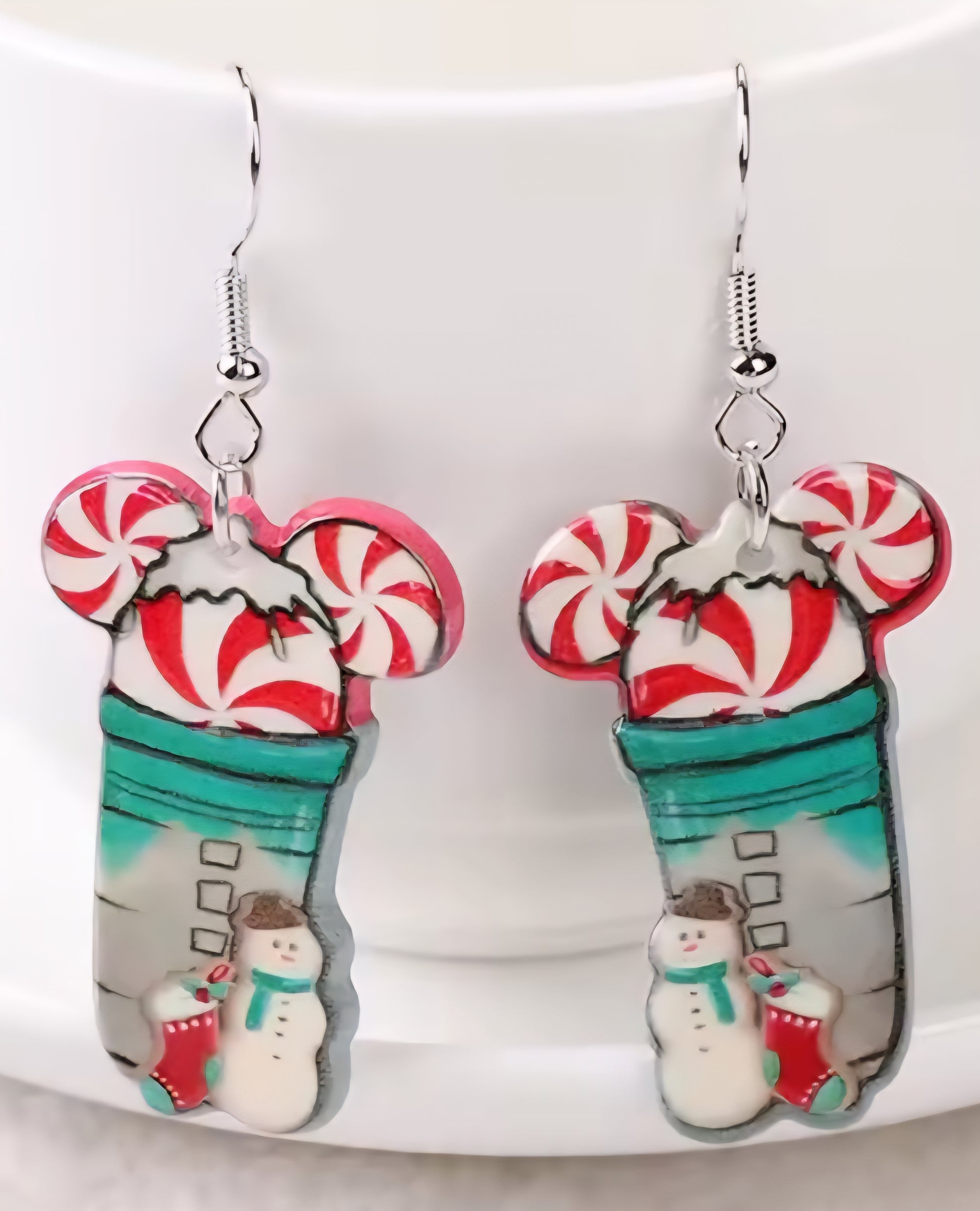 PREORDER Christmas Mouse Head Green Frappe Acrylic Dangle Earrings