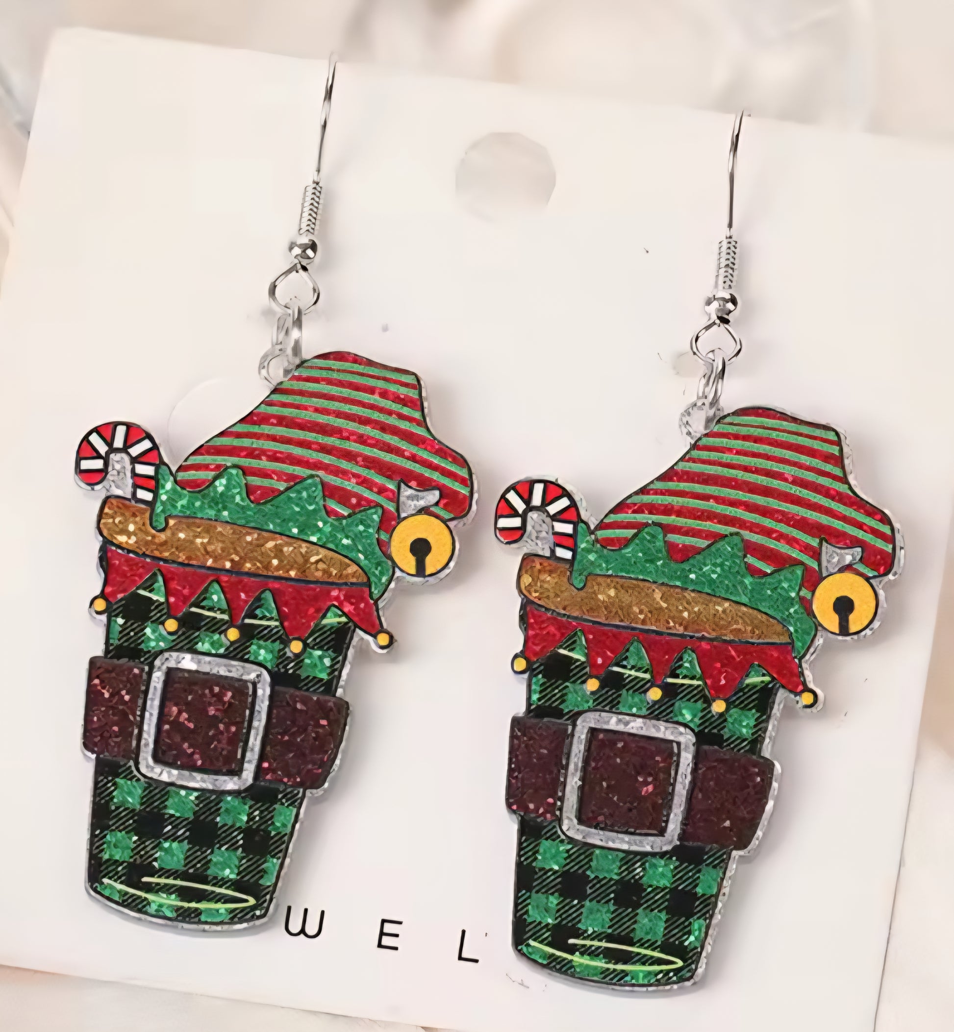PREORDER Christmas Elf Frappe Acrylic Dangle Earrings