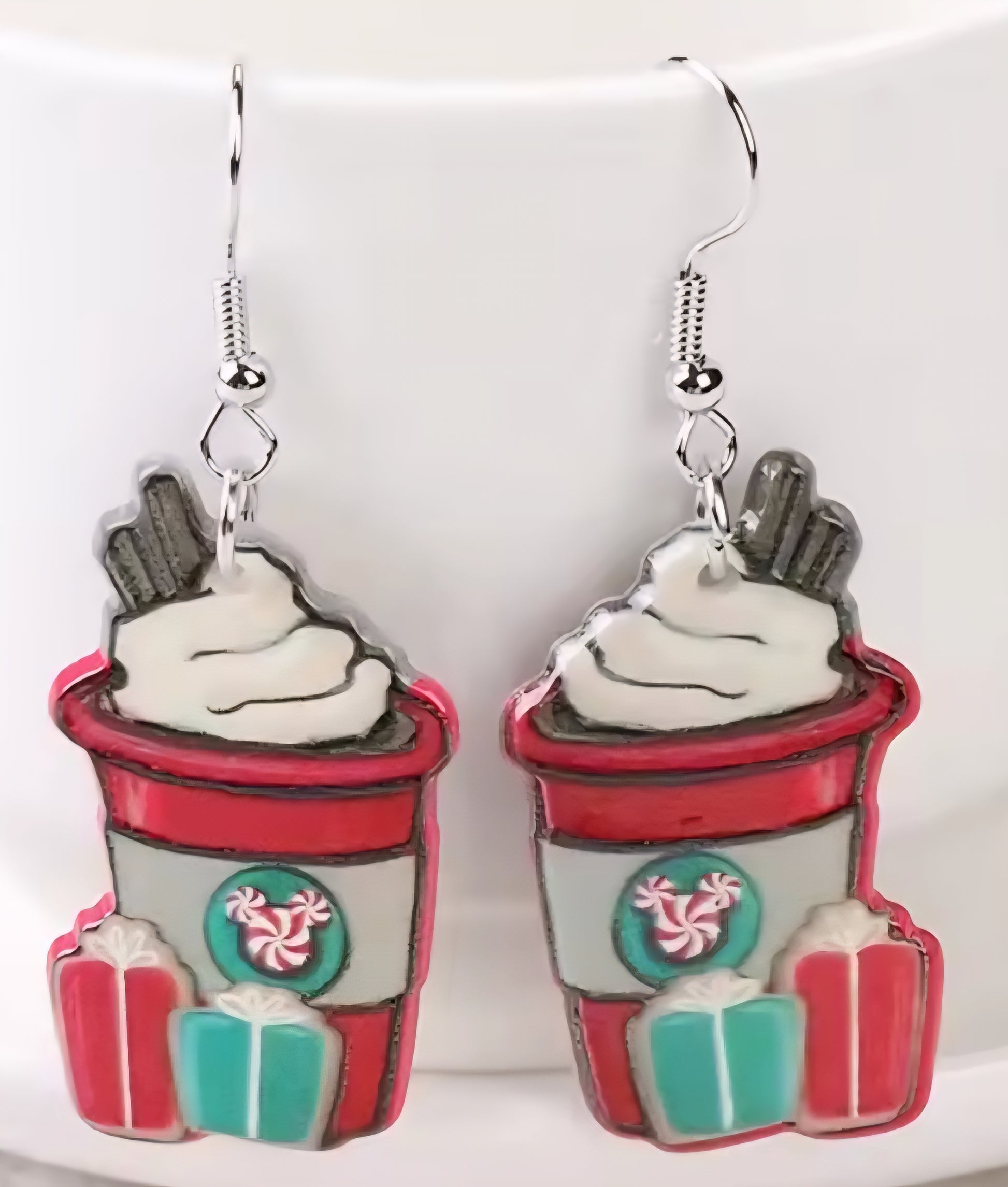 PREORDER Christmas Mouse Head Red Hot Chocolate Acrylic Dangle Earrings