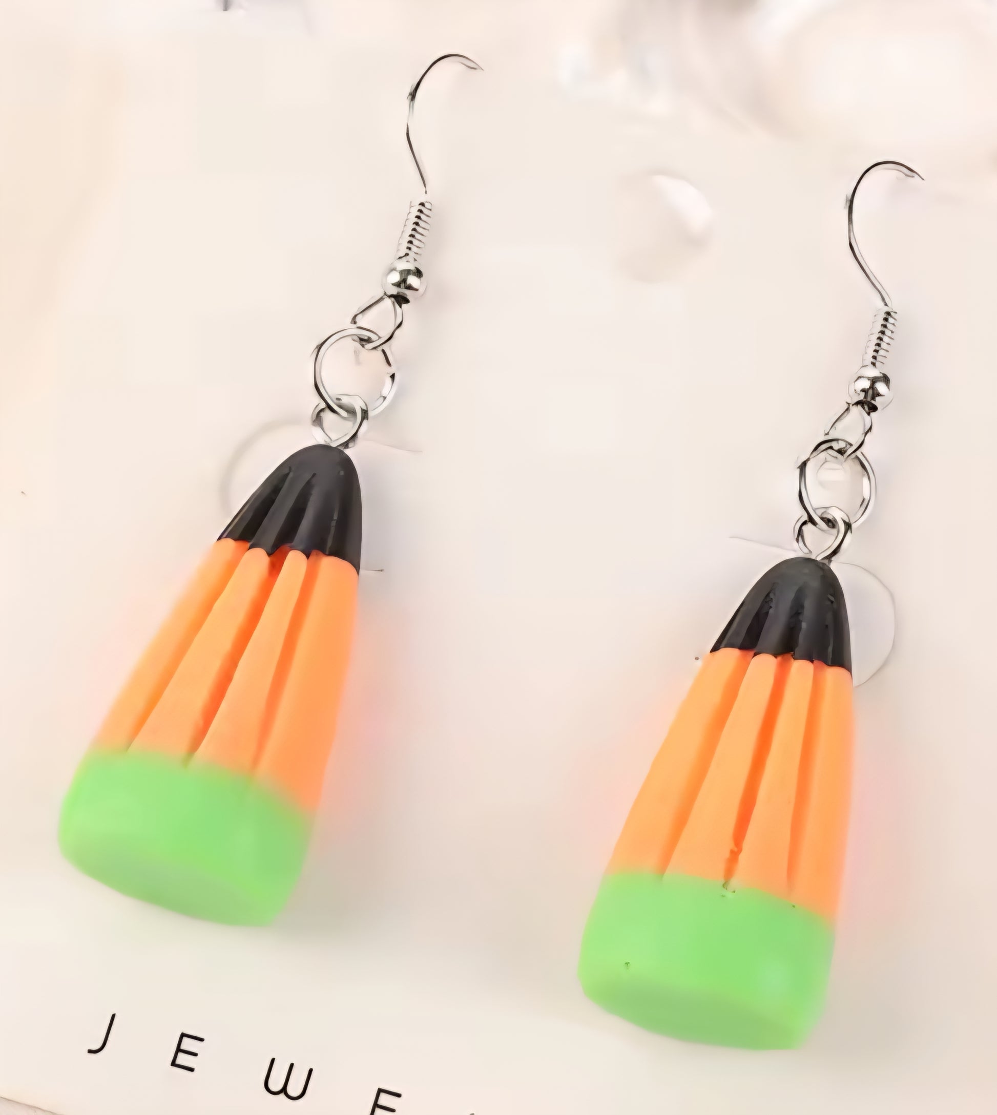PREORDER Halloween Green Goblin Candy Corn Acrylic Dangle Earrings