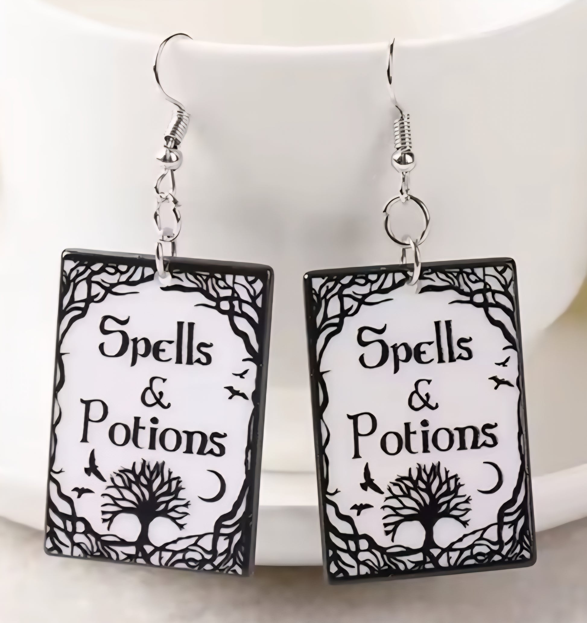 PREORDER Halloween Spells & Potions Book Acrylic Dangle Earrings
