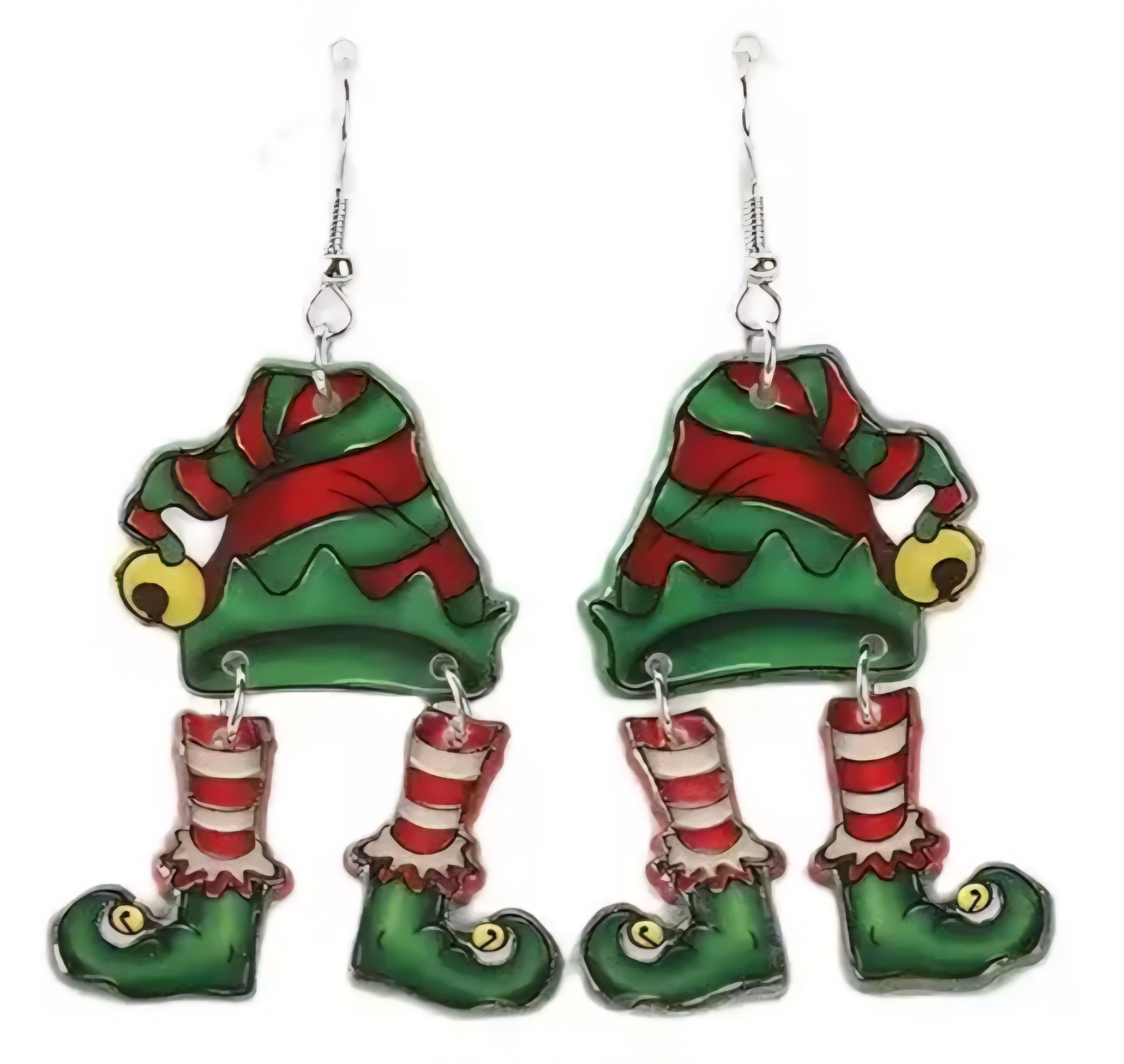 PREORDER Christmas Elf Hat Acrylic Dangle Earrings