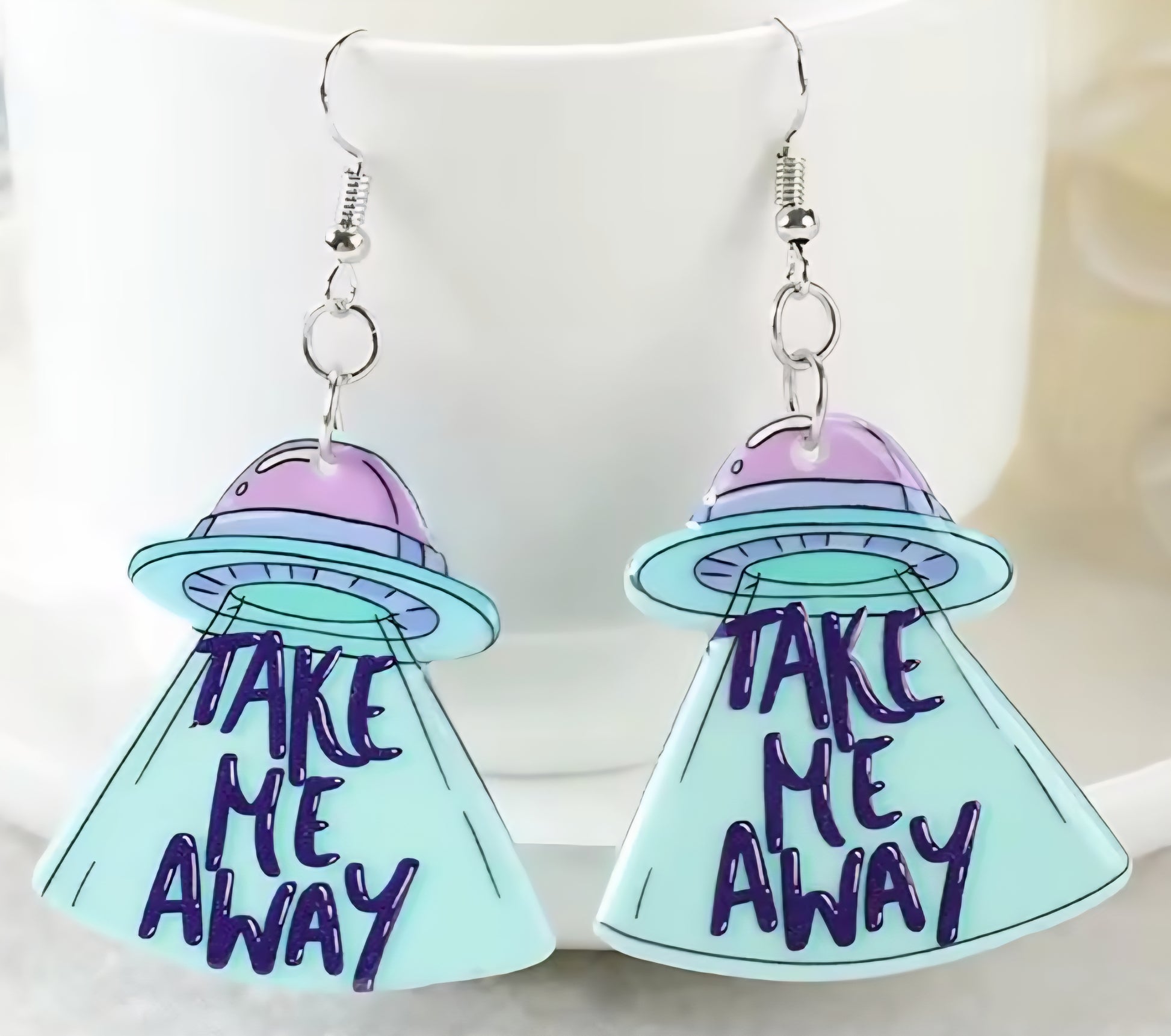 PREORDER Halloween Take Me Away Alien Acrylic Dangle Earrings