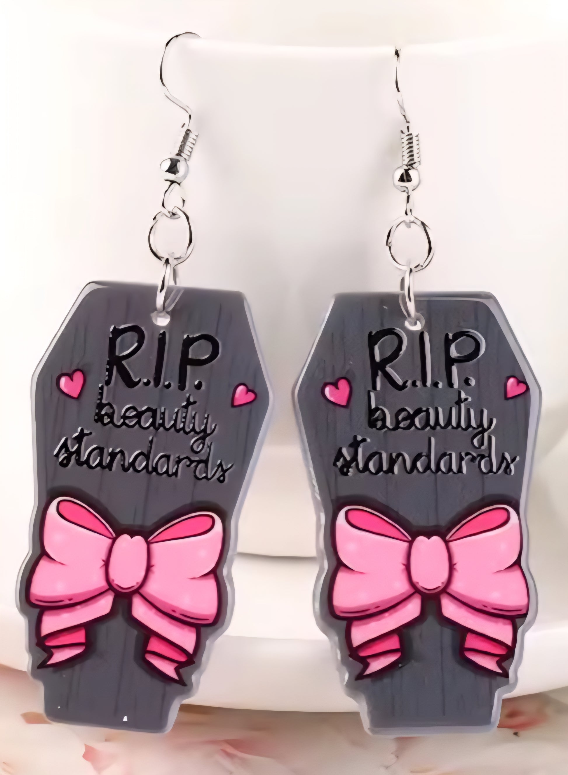 PREORDER Halloween RIP Beauty Standards Acrylic Dangle Earrings