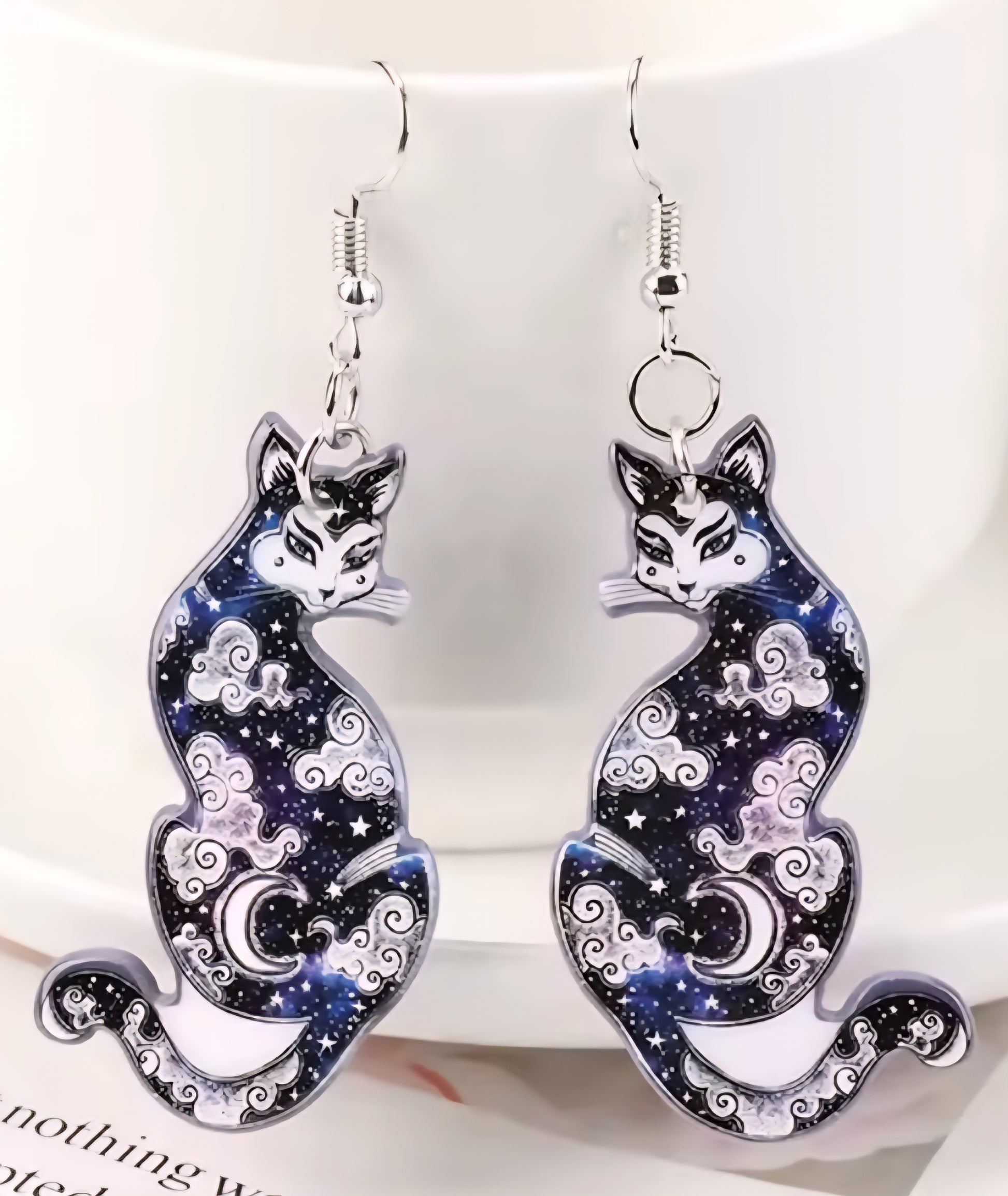 PREORDER Halloween Galaxy Cat Acrylic Dangle Earrings