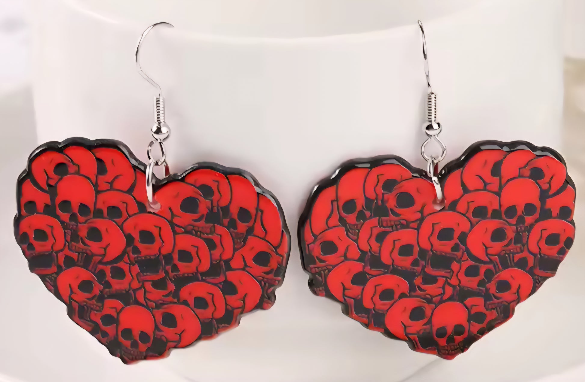 PREORDER Halloween Skull Heart Acrylic Dangle Earrings