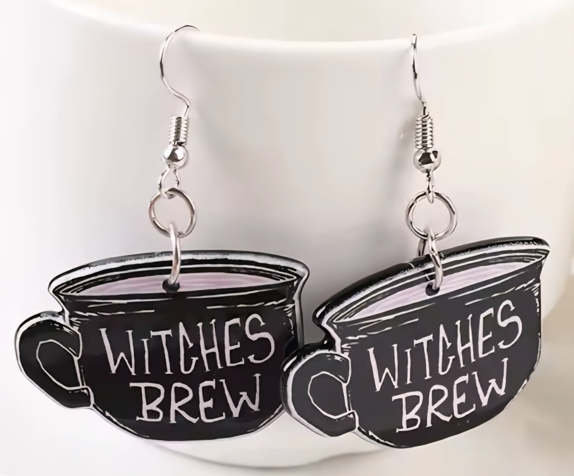 PREORDER Halloween Black Witches Brew Acrylic Dangle Earrings