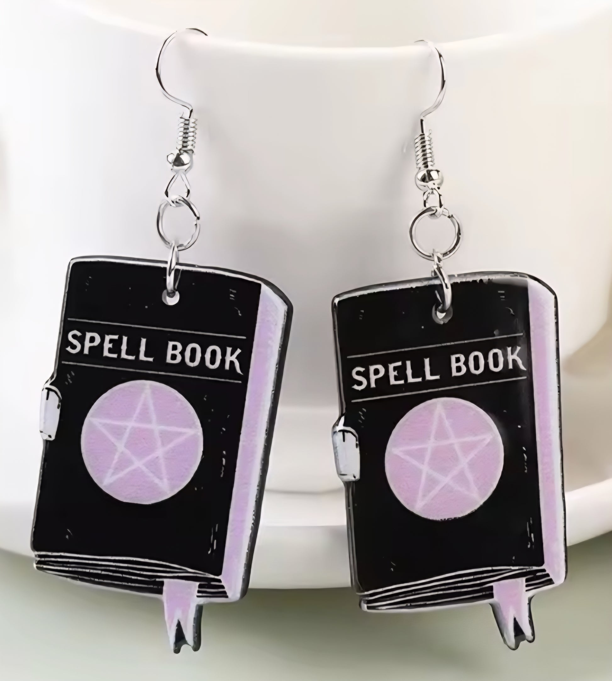 PREORDER Halloween Black Spell Book Acrylic Dangle Earrings