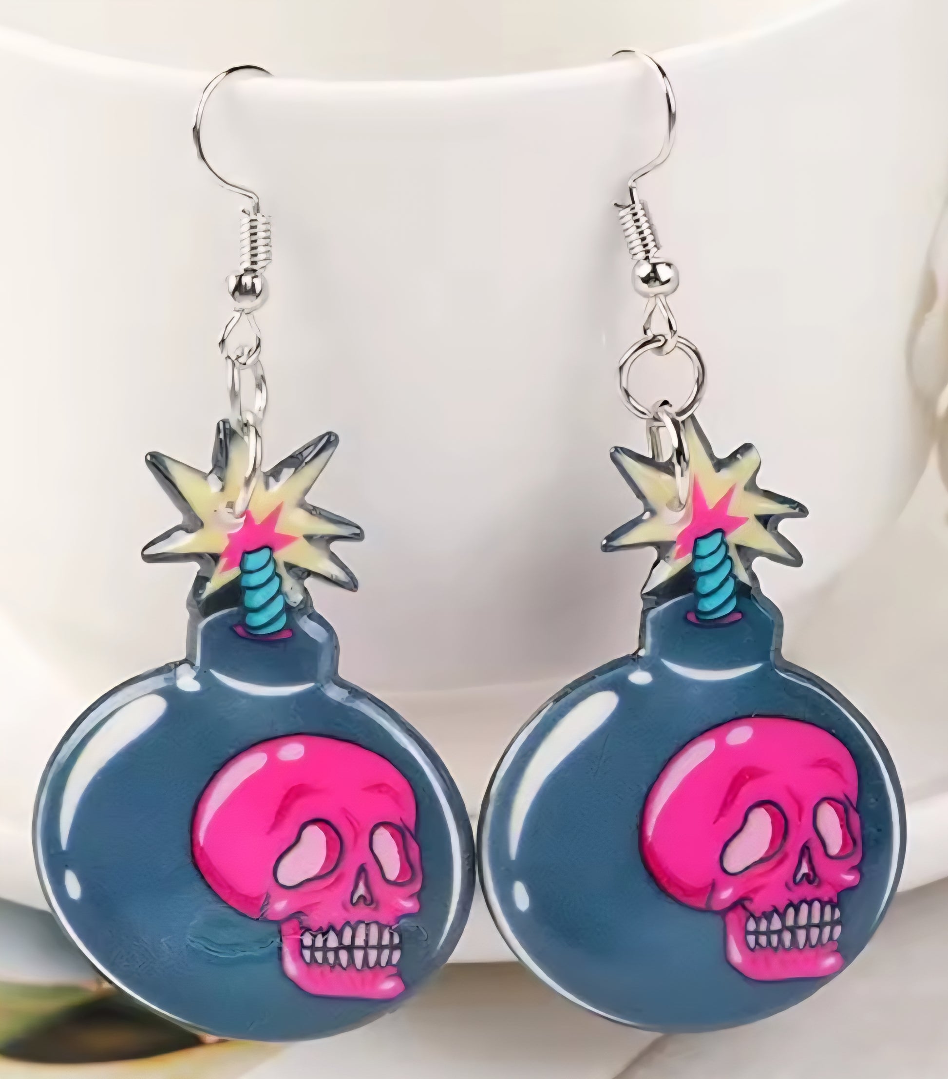 PREORDER Halloween Skeleton Dynamite Acrylic Dangle Earrings