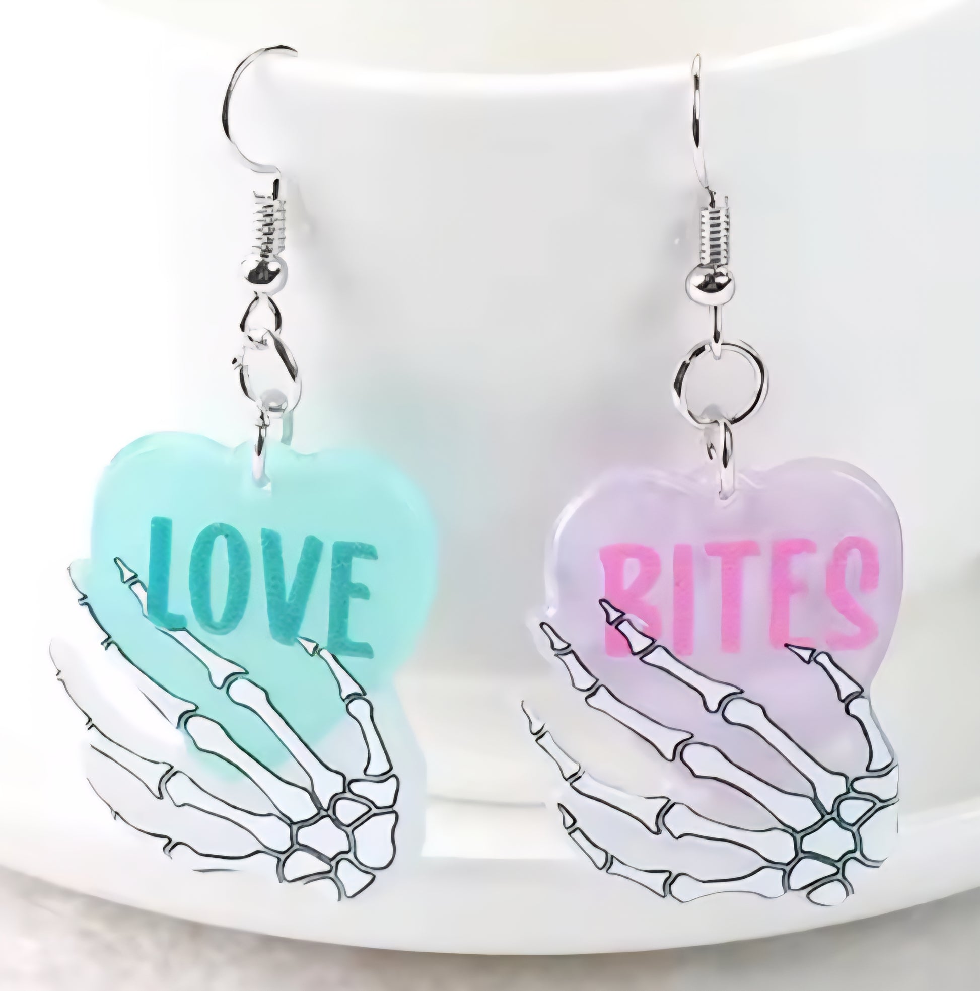 PREORDER Halloween Love Bites Skeleton Heart Acrylic Dangle Earrings