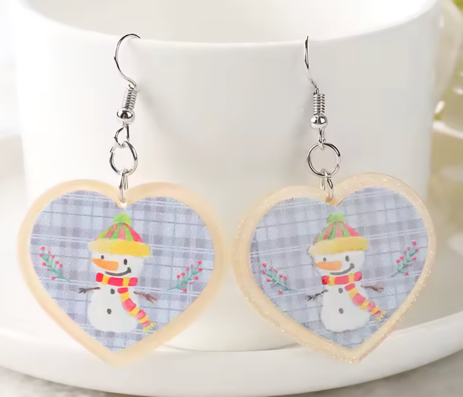PREORDER Christmas Snowman Heart Acrylic Dangle Earrings