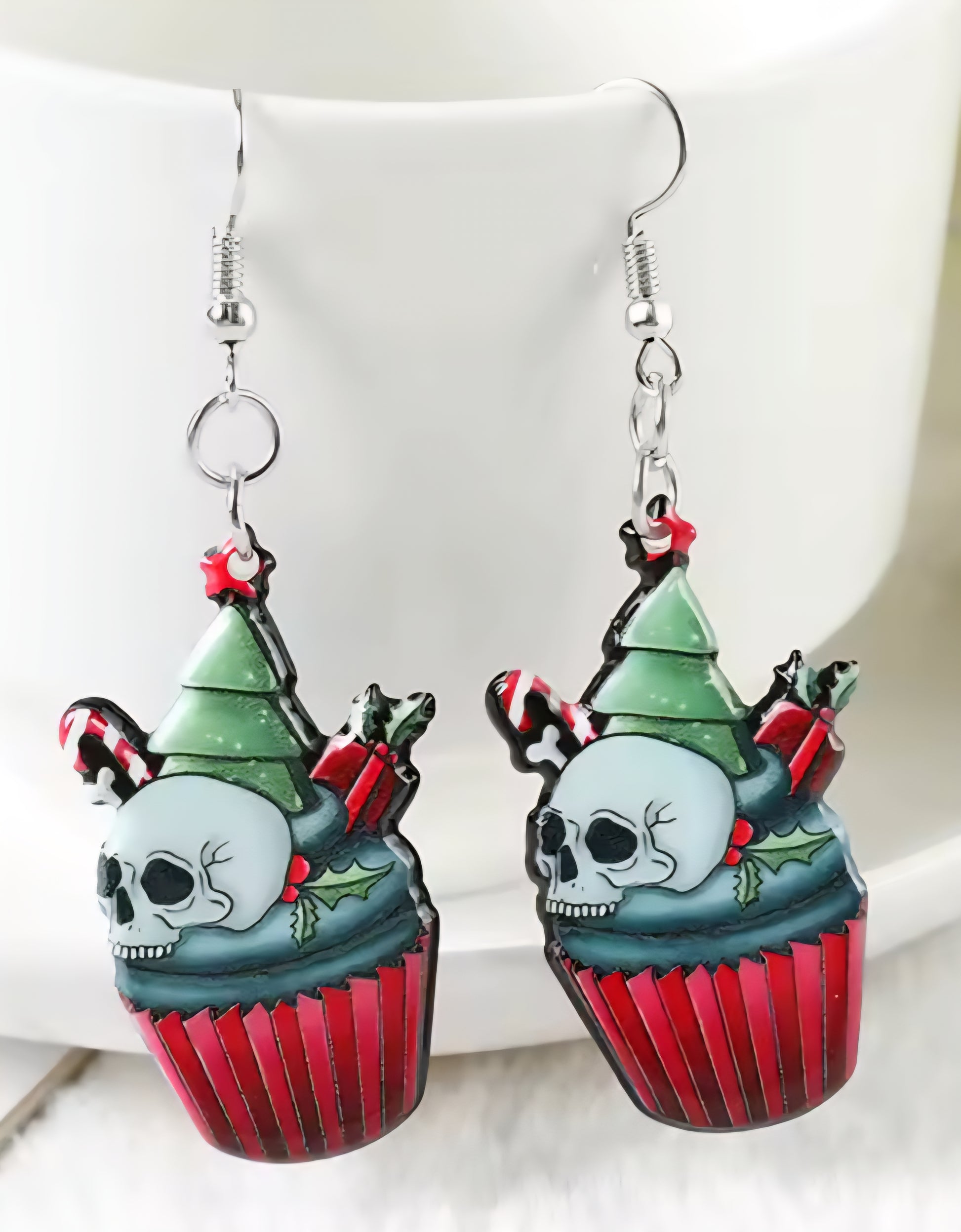 PREORDER Halloween/Christmas Skull Cupcake Acrylic Dangle Earrings