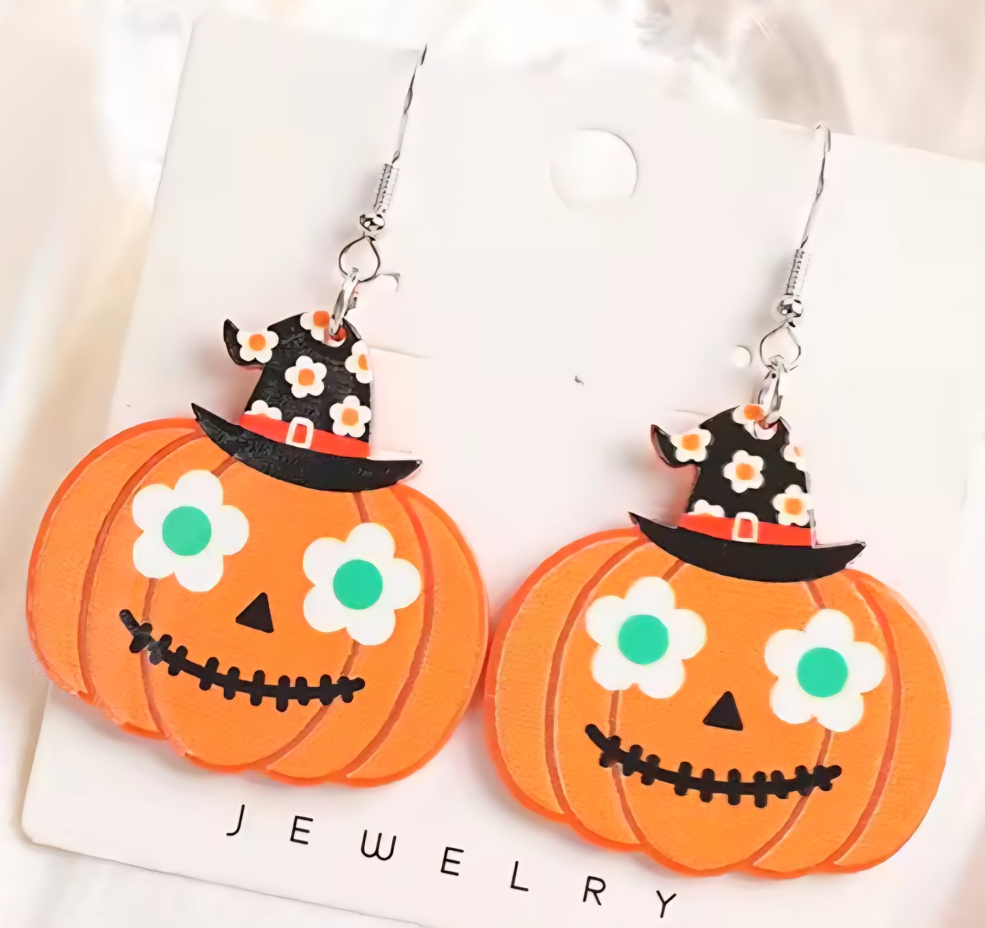 PREORDER Halloween Flower Jack O Lantern Acrylic Dangle Earrings