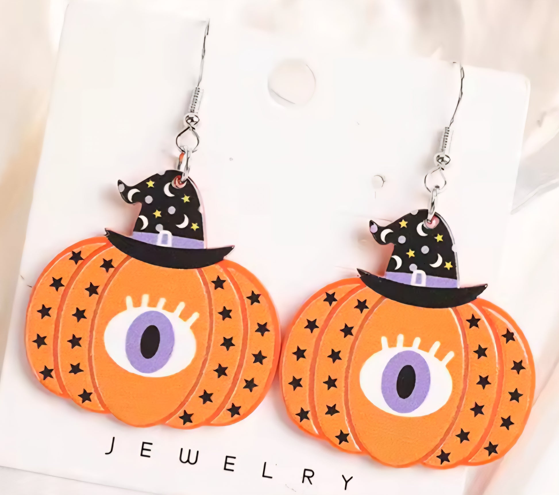 PREORDER Halloween One Eye Jack O Lantern Acrylic Dangle Earrings