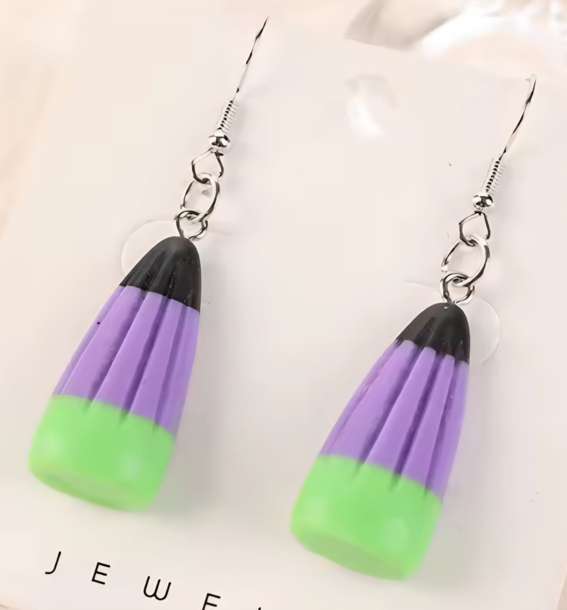 PREORDER Halloween Purple Witch Candy Corn Acrylic Dangle Earrings