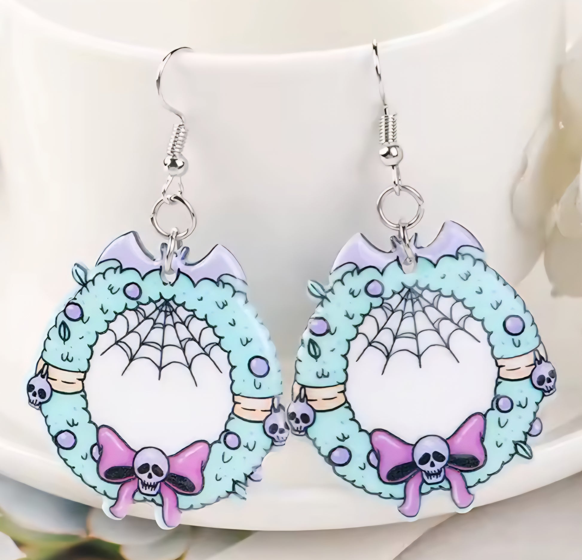 PREORDER Halloween Wreath Bow Acrylic Dangle Earrings
