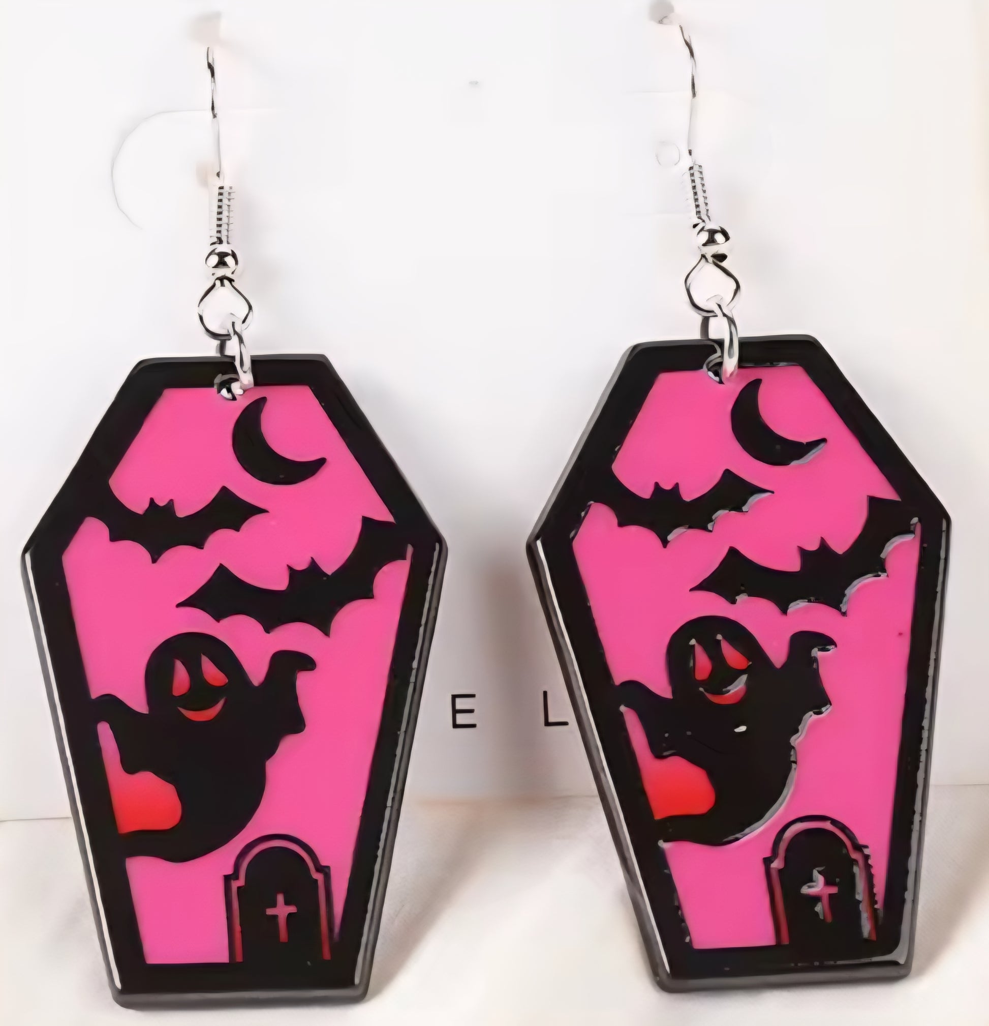 PREORDER Halloween Ghost & Bats Coffin Ombre Acrylic Dangle Earrings
