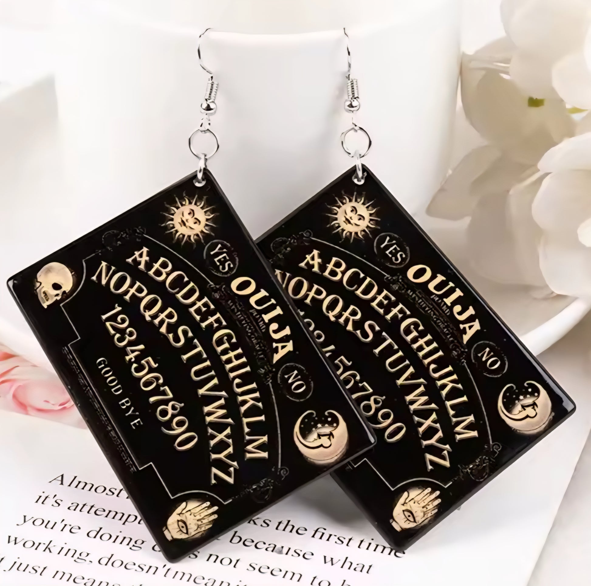 PREORDER Halloween Gold Ouija Board Acrylic Dangle Earrings