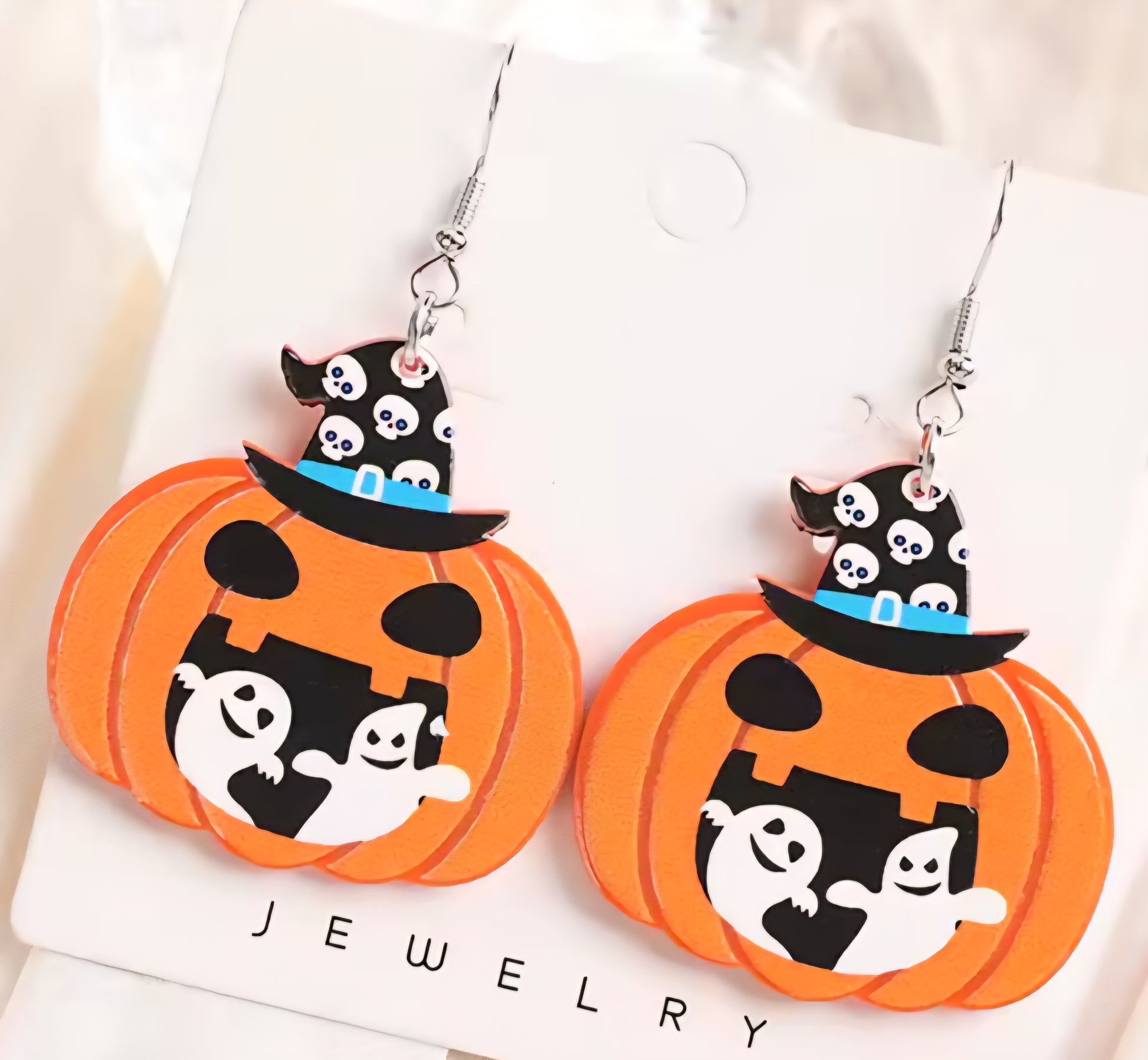 PREORDER Halloween Two Ghost Jack O Lantern Acrylic Dangle Earrings