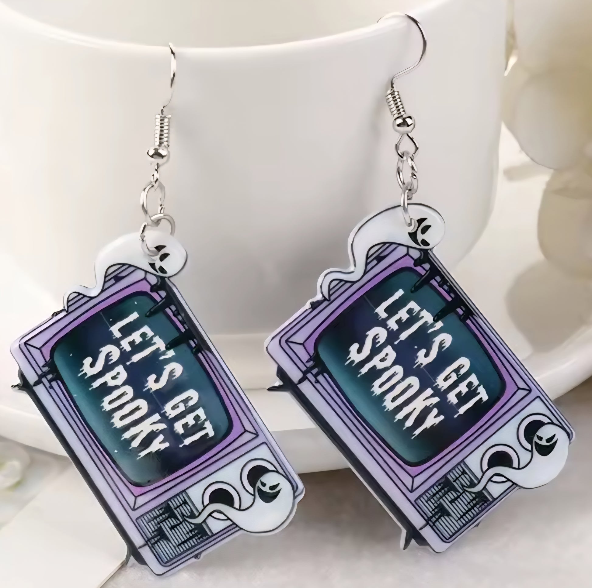 PREORDER Halloween Lets Get Spooky TV Acrylic Dangle Earrings