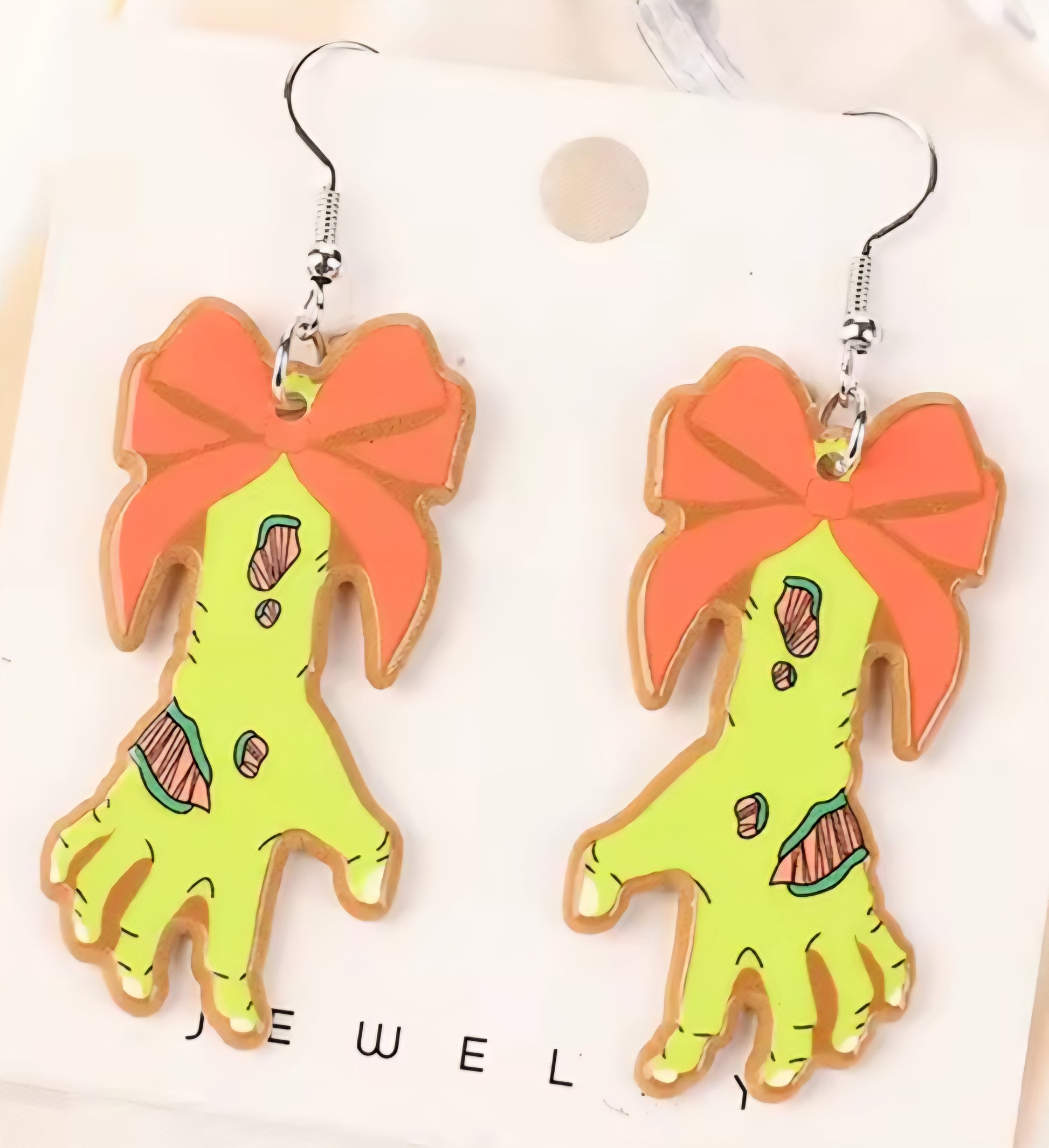 PREORDER Halloween Zombie Bow Acrylic Dangle Earrings