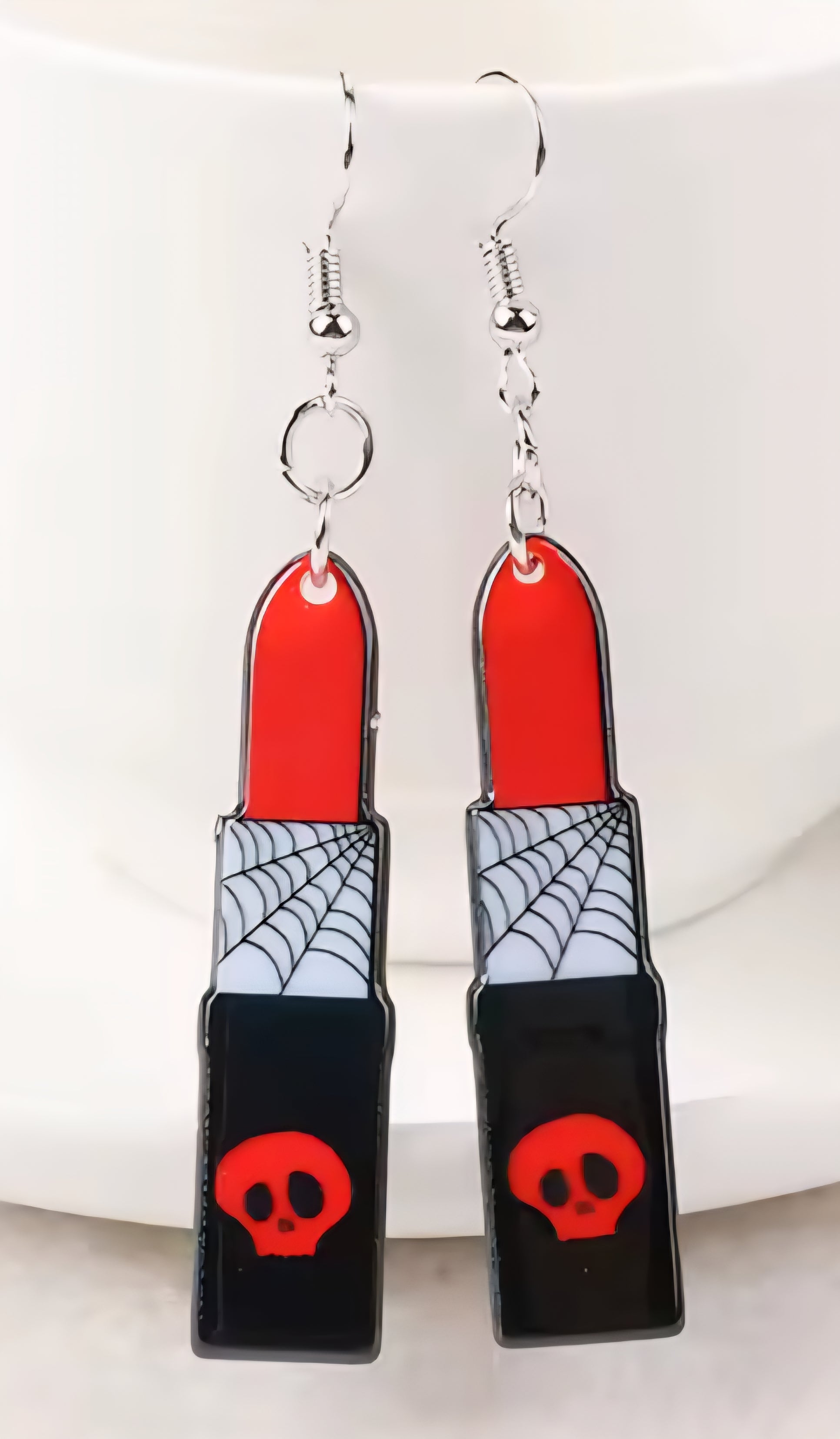 PREORDER Halloween Skull Lipstick Acrylic Dangle Earrings