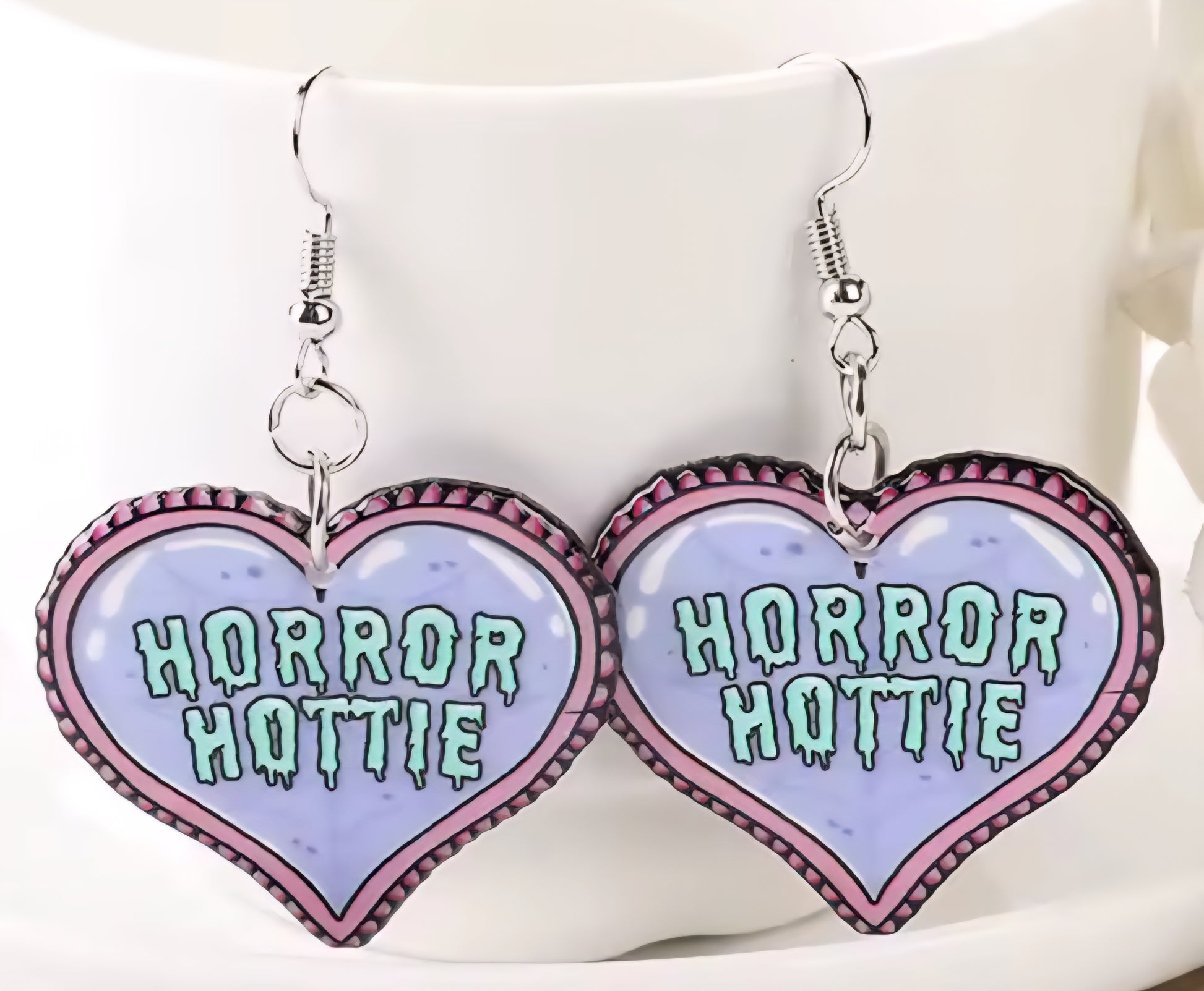 PREORDER Halloween Horror Hottie Heart Acrylic Dangle Earrings