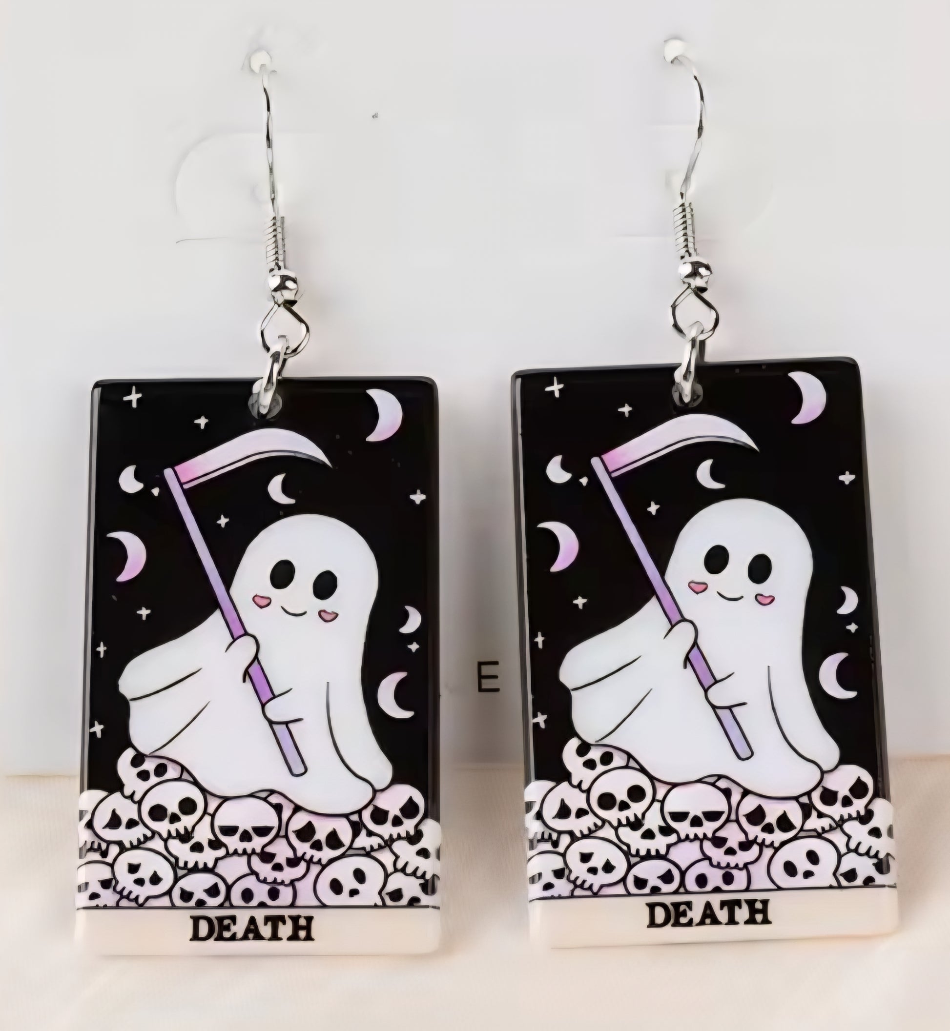 PREORDER Halloween Death Tarot Card Acrylic Dangle Earrings