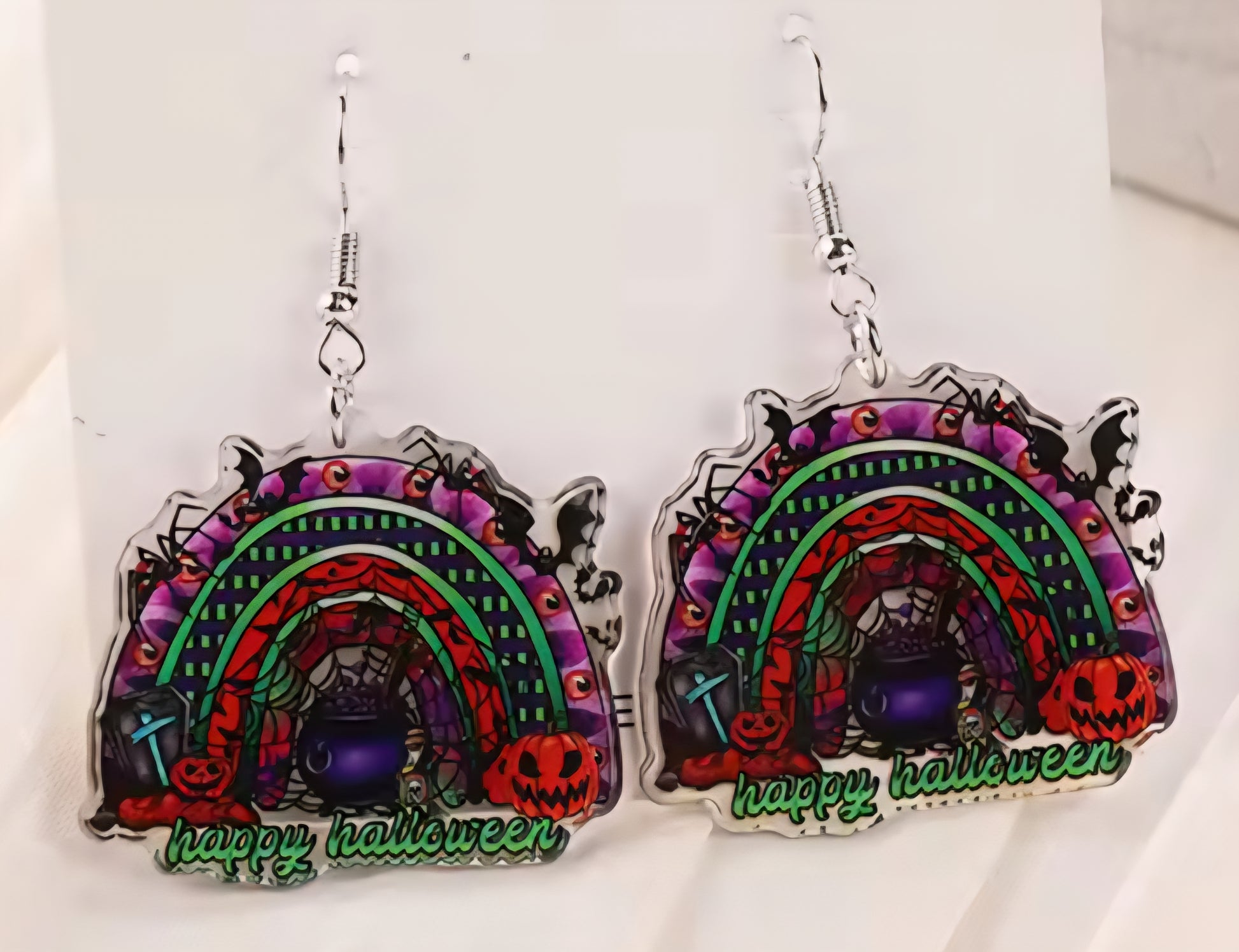 PREORDER Happy Halloween Rainbow Acrylic Dangle Earrings