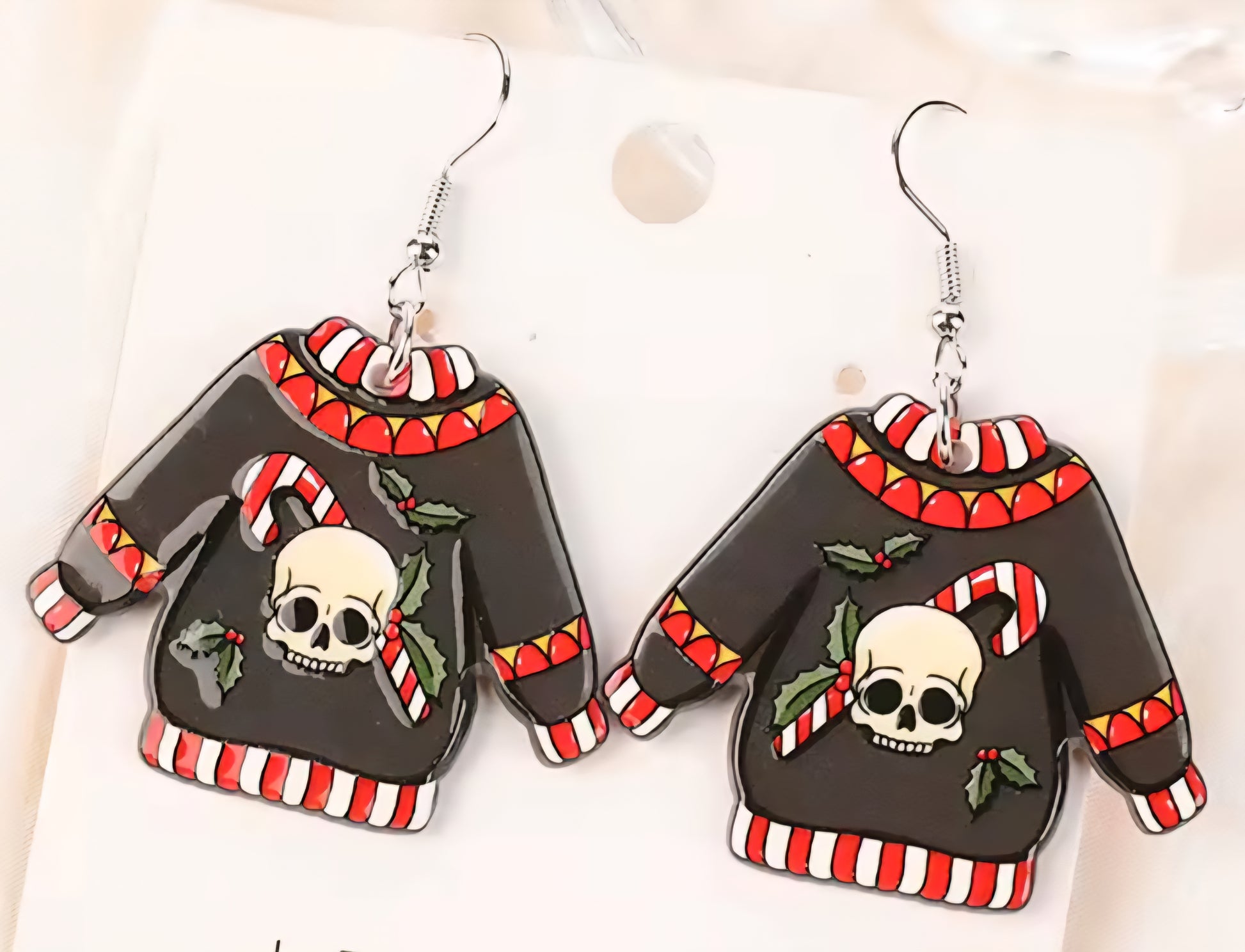 PREORDER Halloween/Christmas Skull Ugly Sweater Acrylic Dangle Earrings