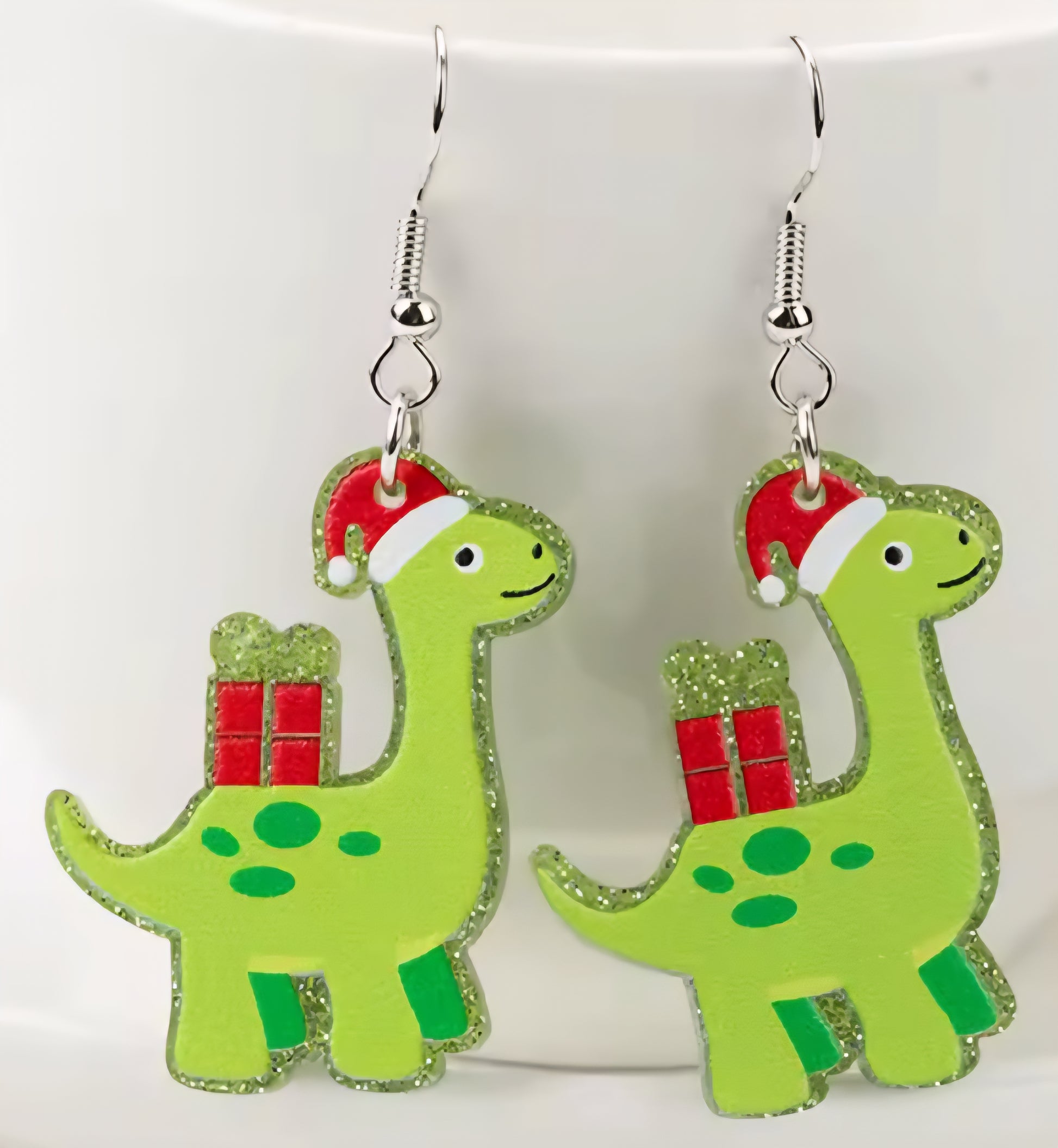 PREORDER Dinosaur Christmas Gift Acrylic Dangle Earrings