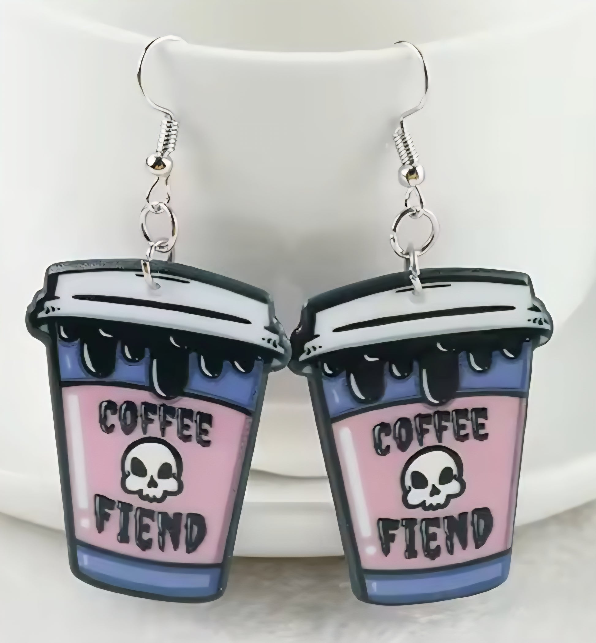 PREORDER Halloween Coffee Fiend Acrylic Dangle Earrings