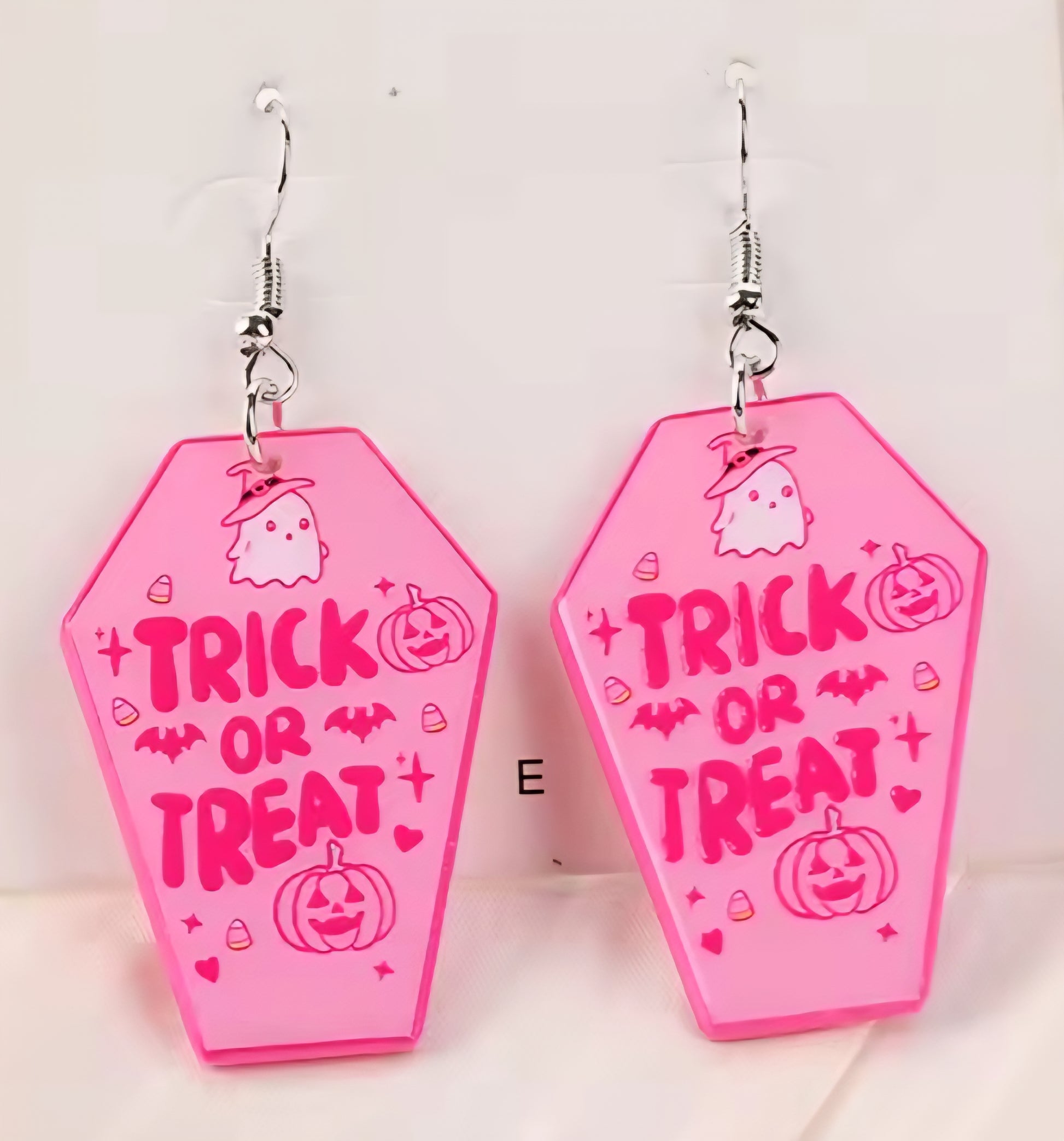 PREORDER Halloween Pink Trick Or Treat Coffin Acrylic Dangle Earrings